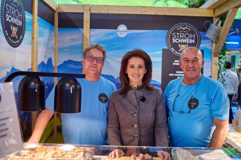 Federführend waren wir hier für die I.G. Bayerisches Strohschwein e.V. vertreten. Als aktives Mitglied stehen wir voll und ganz hinter diesem regionalen, ausschließlich bayerischen Produkt. Strohschweine werden auf Stroh gehalten und somit ist die Aufzucht besonders artgerecht. Das natürliche Instinktverhalten der Schweine wird geweckt, insbesondere das Wühlen und das größere Platzangebot sind wichtige Pluspunkte, wie auch das gesunde hofeigene/regionale und genfreie Futter, die Spielmöglichkeiten, die bequeme Liegefläche durch Stroheinstreu und die Überwachung aller Kriterien. Die entsprechende GQ-Bayern Zertifizierung ist für uns selbstverständlich.